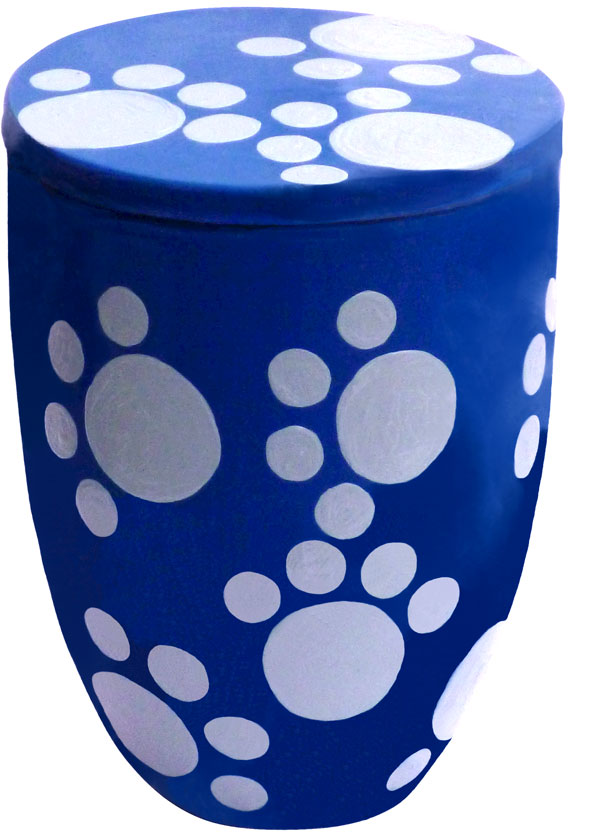 Farbe der Urne: Blau mit hellgrauen Katzenpfötchen-Abdrücken