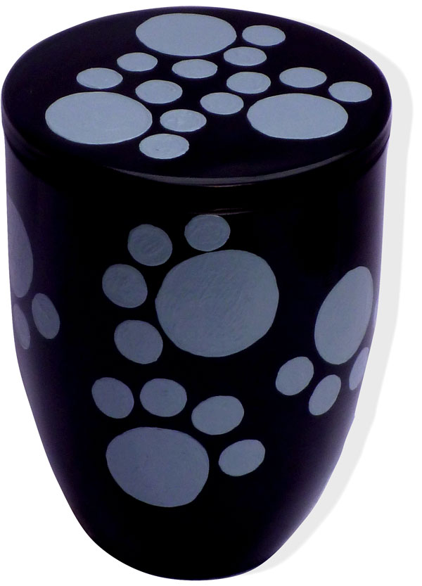 Farbe der Urne: Schwarz mit hellgrauen Katzenpfötchen-Abdrücken